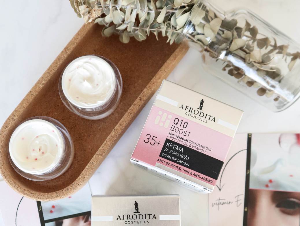 Voli svoju kožu, voli svoje godine! Ovom porukom Kozmetika Afrodita ponosno predstavlja novu njegu za lice Q10 BOOST koja prati potrebe tvoje kože u najaktivnijem razdoblju (35+). Sa snagom dvaju iznimnih antioksidansa: koži svojstvenim koenzimom Q10 i vitaminom E u enkapsuliranom obliku. Za dvostruki anti-age i vidljiv učinak pomlađivanja. Dostupna u obliku kreme za suhu i kreme za normalnu do mješovitu kožu. Uživajte u njezi bogatoj antioksidansima!