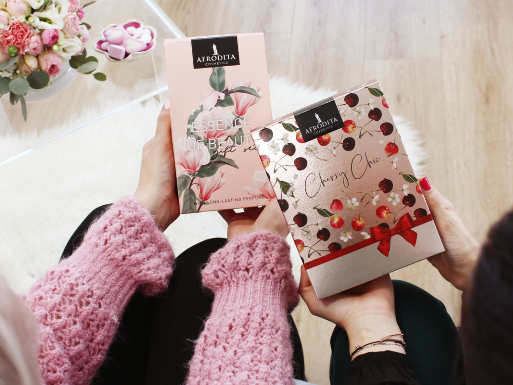 U veljači, mjesecu ljubavi, baš u pravo vrijeme, na police trgovina iz Kozmetike Afrodita stigla su dva nova poklon paketa koji slave ljubav i prirodnu njegu kože. Namijenjena su svim damama koje svoje tijelo vole njegovati proizvodima zamamnog mirisa. CHERRY CHIC oduševljava zamamnim mirisom slatkih trešanja, uhvaćenog u laganu hidratantnu formulu gela za tuširanje i beauty mlijeka za tijelo. Poklon paket ESSENCE OF BEAUTY koži nudi užitak njege s profinjenom simfonijom slatko-cvjetnih mirisa. Mmmm. Miriši na ljubavi, ljepotu i proljeću koje jedva čekamo… Idealan su poklon za Valentinovo, 8.mart, rođendan ili tek tako.