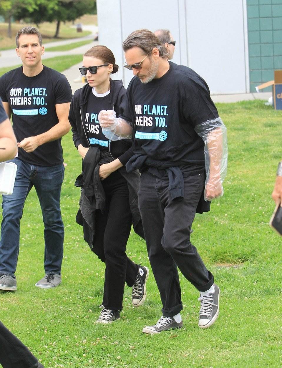 Glumački par marširao je Hollywoodom držeći u rukama strvine - Joaquin je nosio kokoš, a Rooney ptičicu. Oboje su bili odjeveni u majice s natpisom ‘Naš planet. Njihov isto’. Nakon prosvjeda Rooney je skinula rukavice i na desnoj ruci otkrila veliki prsten s kojim je viđena i nekoliko dana prije, pa je dodatno potaknula nagađanja o mogućim zarukama.