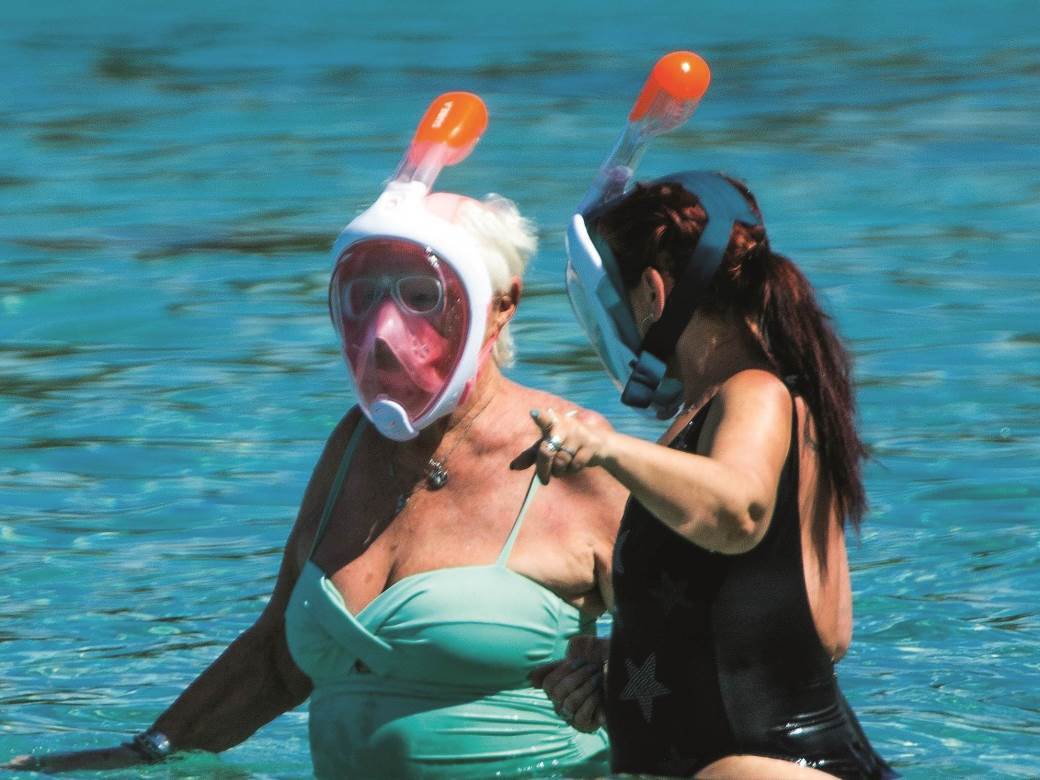 Zajedno su se opuštale na plaži, a kada je došlo vrijeme za osvježenje, odšetale su u more i stavile maske koje prekrivaju cijelu glavu. Oskarovka, koja je u prosincu proslavila 85. rođendan, nije krila koliko uživa u podvodnom pejzažu i šarenim ribicama koje je, zahvaljujući maski, jasno vidjela.