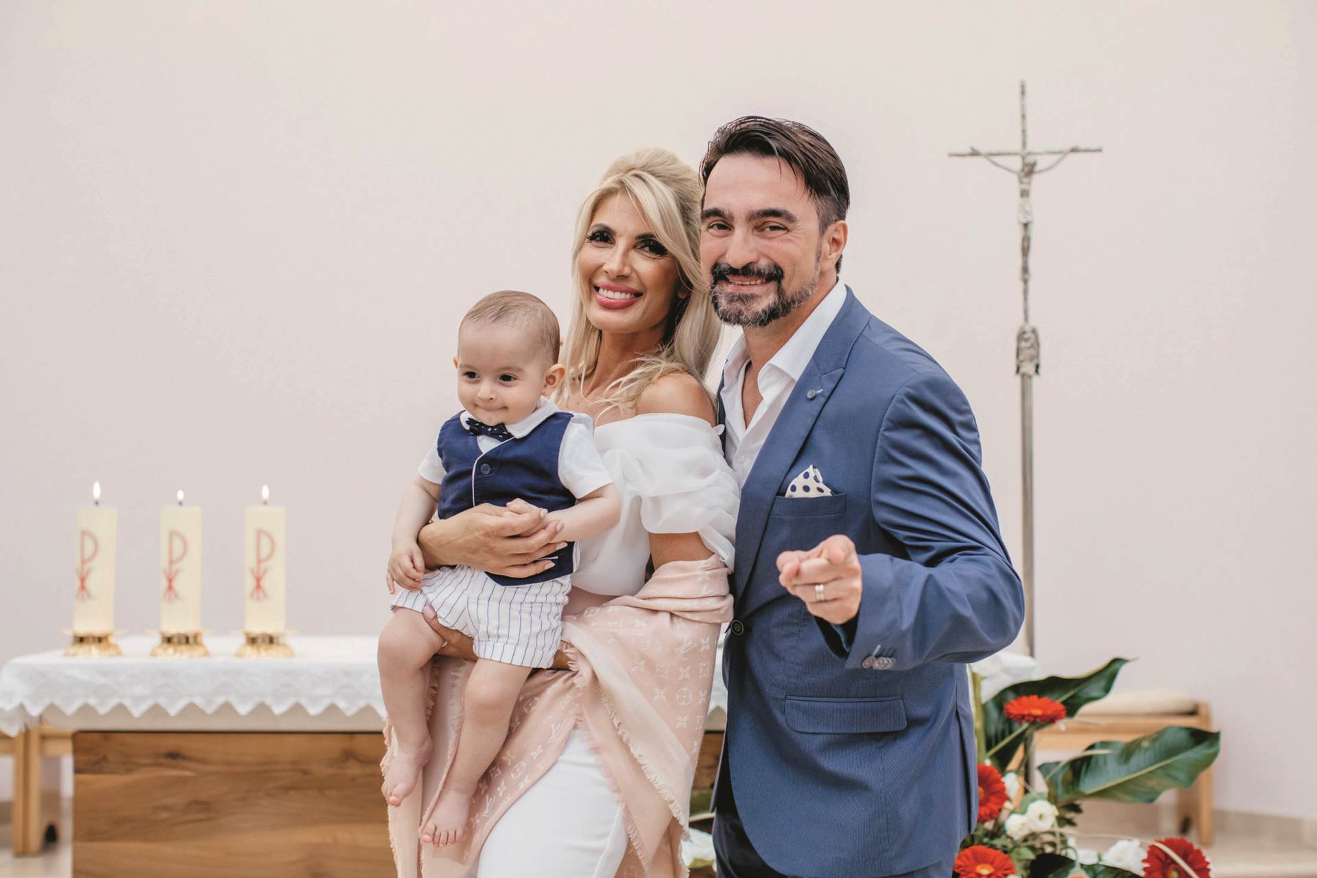 Krštenje je prošlo jako lijepo i veselo, u obiteljskom i prijateljskom krugu ljudi. Ivan Luka ima šest i pol mjeseci pa nismo više htjeli čekati. Na sreću, otvorila se mogućnost pa smo krštenje mogli organizirati ovih dana. Svi znamo kakva je situacija pa smo poštovali svačiju odluku ako nije mogao doći, ali bit će još razloga za slavlje jer obožavam okupiti rodbinu i prijatelje - rekao nam je dobro raspoloženi Joško Čagalj, koji je prošli tjedan krstio svoga preslatkog sinčića Ivana Luku. Za maloga veseljaka sve je bilo kao u plavom snu. U plavo‑bijelom kompletiću s efektnom leptir-mašnom mali Ivan Luka šarmirao je uzvanike dok su ga presretni roditelji nosili na primanje sakramenta krštenja. Ceremonija je održana u splitskoj crkvi svetog Leopolda Mandića, a samo za tu prigodu župnik iz Zagvozda don Mario Čagalj, veliki Jolin prijatelj iz škole, došao je krstiti njegova sina. Kumovi veselom Ivanu bili su također Jolini prijatelji, splitski glazbenik Milan Terzić i Istrijanin Adriano Ukušić.
