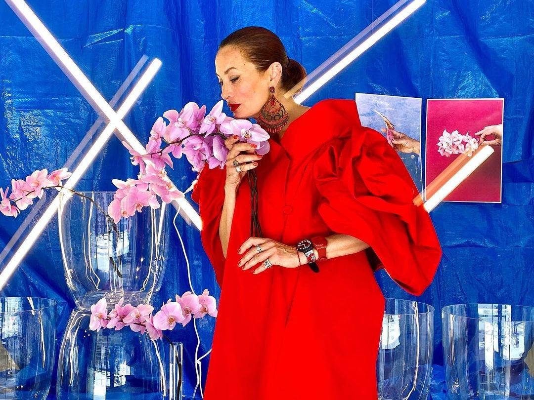 U prekrasnoj crvenoj haljini s predimenzioniranim visećim naušnicama, dva sata na ruci, s poznatom zalizanom kosom, pozirala je umjetniku i vlasniku cvjetnog atelijera Saši Šekoranji. Bio je on tako jedan od prvih koje je Lea posjetila nakon dolaska iz Švicarske, gdje živi s obitelji (sada na odvojenim adresama) posljednje četiri godine.