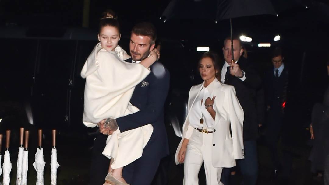 Ceremonija je bila skromna i gotovo je prošla u tajnosti, a paru je to drugi brak. Na vjenčanju s Davidom bili supruga Victoria te njihovi sinovi Romeo (19) i Cruz (16) i kći Harper (10), koja je bila djeveruša dok Brooklyn (22), koji gradi fotografsku i manekensku karijeru u Americi, nije došao. Romeo je poveo i svoju djevojku, manekenku Miju Regan (19).