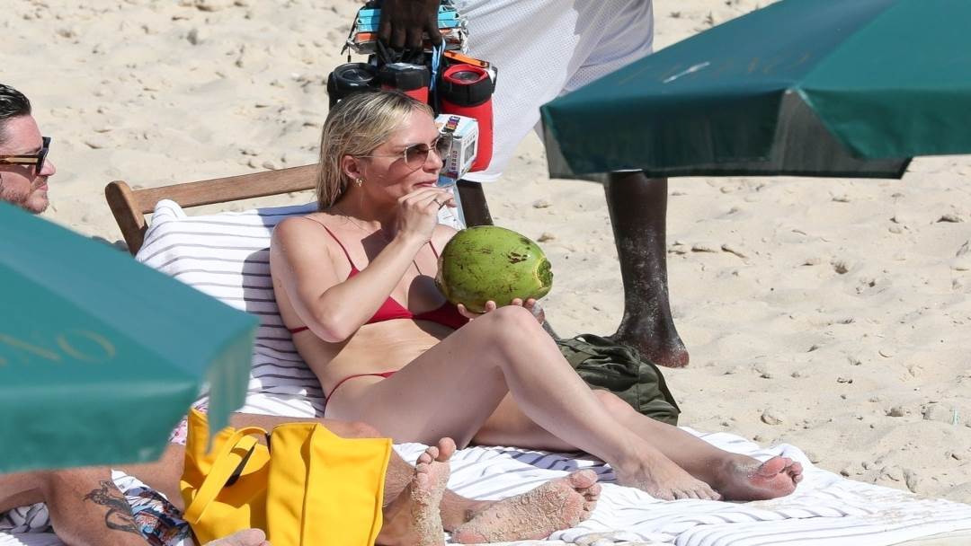 Tako se barem čini prema novim fotografijama na kojima se vidi kako se zabavlja u društvu dvojice prijatelja. Nosila je sićušni bikini i pijuckala koktel od kokosa, a Daily Mail navodi i da su društvo na plaži promatrali i agenti sigurnosne službe.