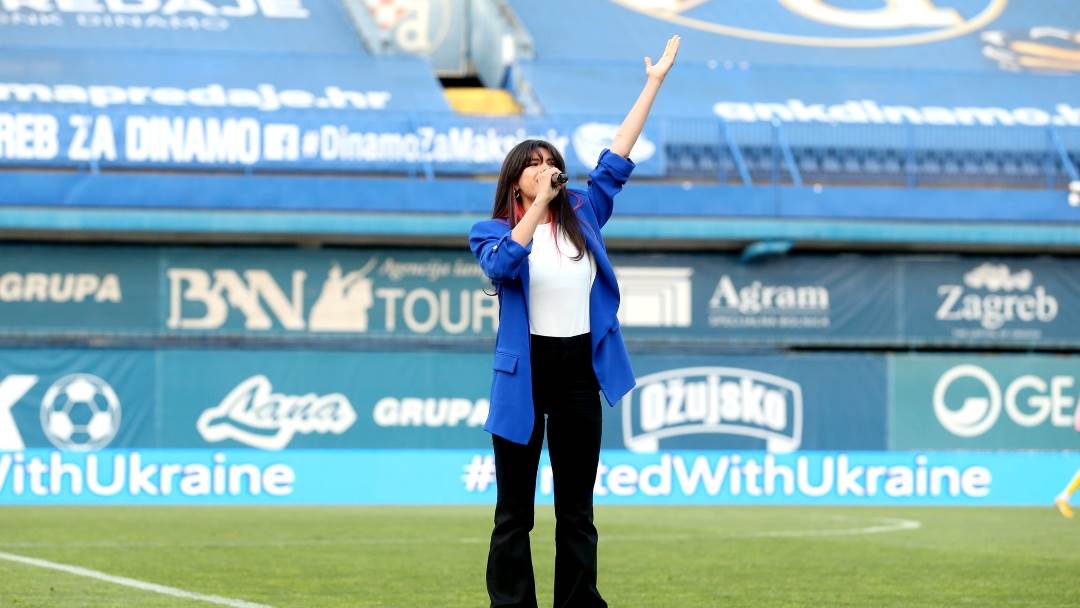 Kada je na maksimirski stadion sinoć stala prekrasna Michelle Andrade (25) nastao je muk. Mlada ukrajinka je na prijateljskoj utakmici GNK Dinama i Dinama Kijev otpjevala ukrajinsku himnu, a na poluvremenu je publiku zabavila s još nekoliko pjesama.
