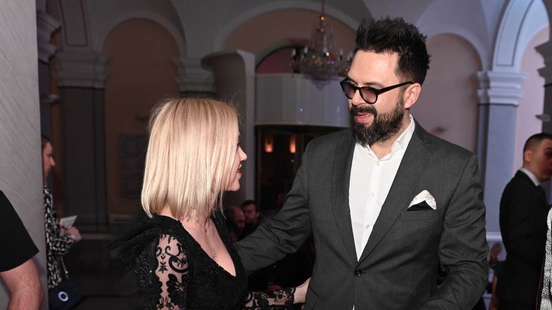 Na proslavi je Petar pozirao i s kolegicom Jelenom Rozgom koja je za tu priliku izabrala crnu kožnu haljinu s naramenicama i crne sandale.