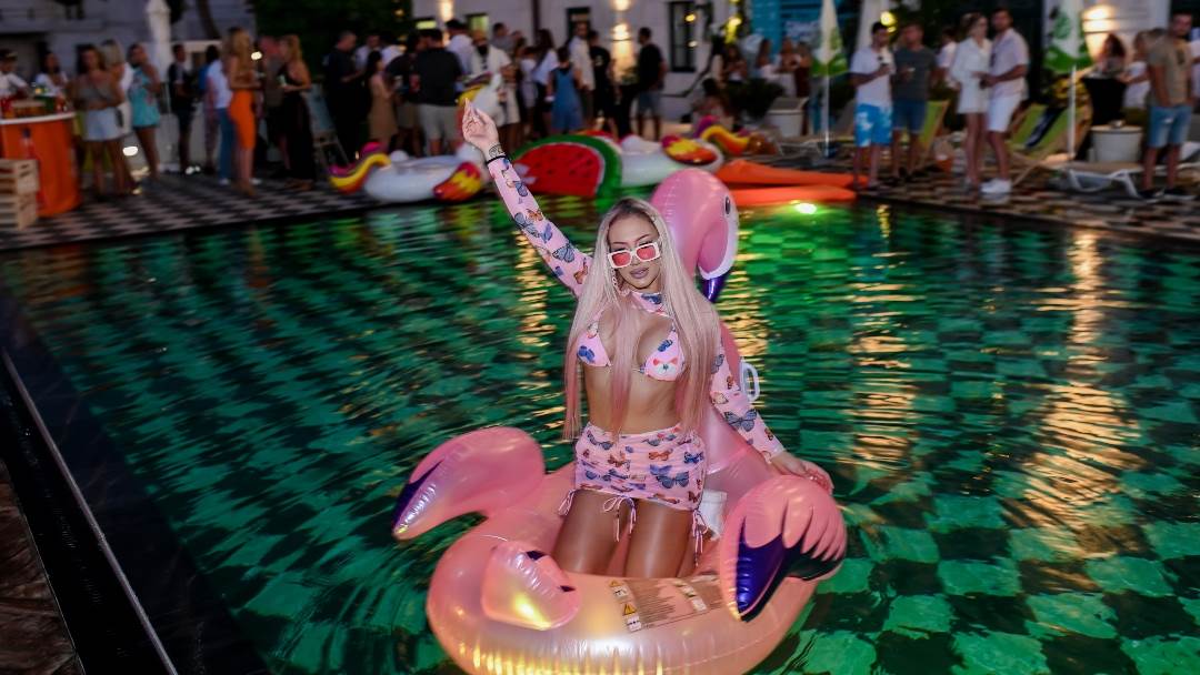 Djevojke su zaplesale skupa na taktove glazbe koju je puštao DJ Wekingz, a goste je zabavljala i Lidija Bačić. Osim plesnim pokretima, Ela je priredila show i u bazenu gdje je spremno pozirala za fotografiju na luftiću.