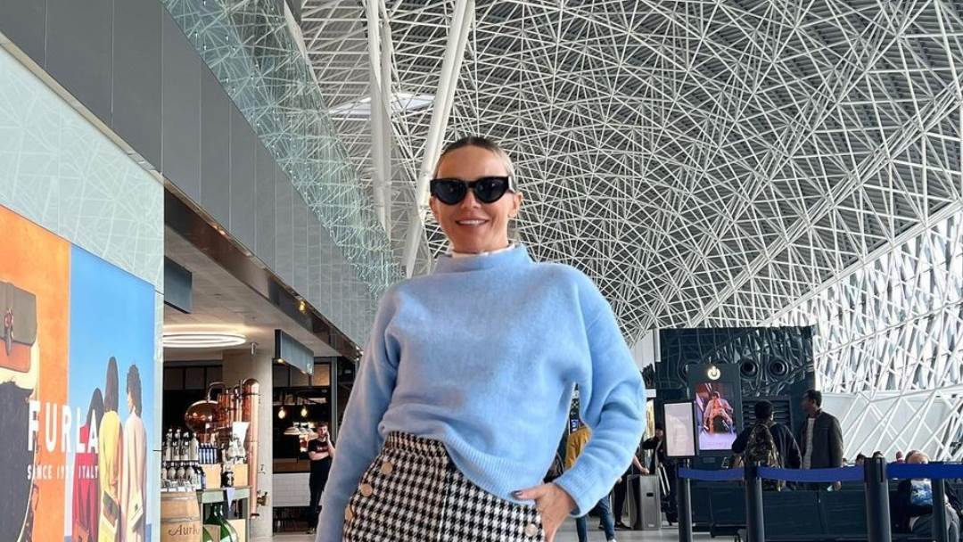 Za let je pjevačica izabrala kombinaciju plave veste dugih rukava i kariranih kratkih hlačica, a na nogama je nosila trenutno vrlo popularne vojničke čizme.