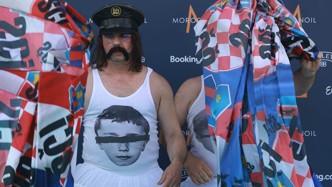 Očekivano, članovi Leta 3 potrudili su se da se o njihovim outfitima priča. Na otvorenje su doli ogrnuti golemim maramama, na kojima je bio grb Republike Hrvatske i sad već poznati 'ŠČ!'. Samo je Prlja nosio boje Ukrajine.