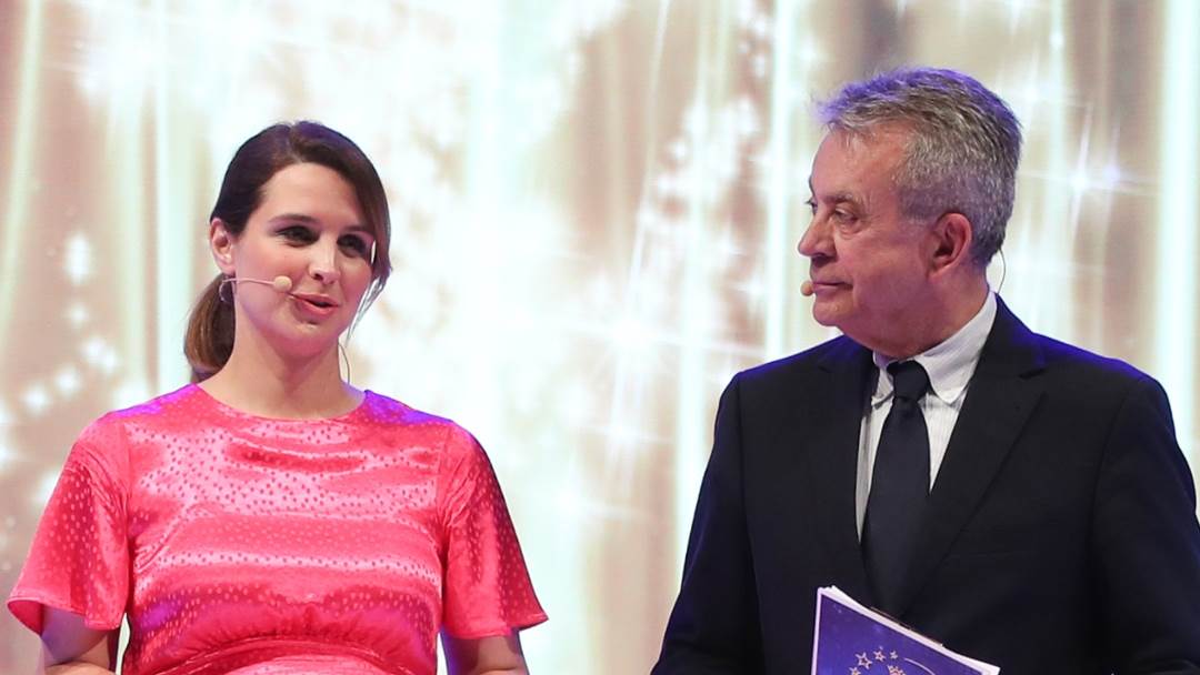 Sad je Doris u društvu Marija Sedmaka vodila Izbor za kraljicu Zagreba, a ružičasta haljina od sjajnog materijala samo je istaknula njen trbuh.