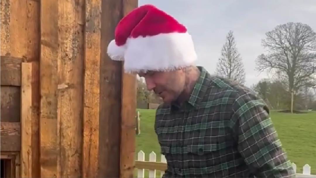 Pozirao je s kapom na glavi, koja je bila u božićnom duhu i otkrio da je kao poklon za Božić dobio kokošinjac s kokošima. Hranio ih je s osmijehom na licu, a njegova supruga Victoria ga je snimala, spretno se odmičući od životinja.