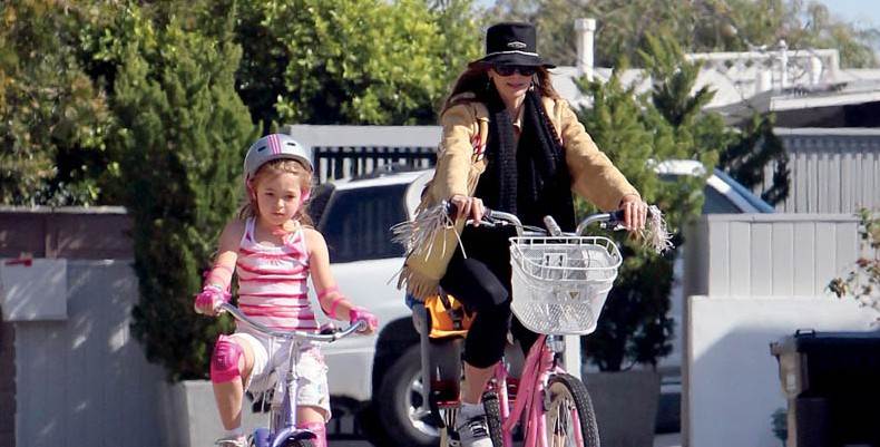 Svaka majka posebno cijeni sve dragocjene trenutke koje provede sa svojom dječicom. Tako i 44-godišnja oskarovka Mira Sorvino, koja je sunčani kalifornijski dan odlučila iskoristiti za vožnju biciklom sa sedmogodišnjom kćerkicom Matteom Angel, koju je dobila u braku s kolegom Christopherom Backusom. Mira i Christopher već su devet godina u sretnom braku, što je rijetkost u Hollywoodu, a osim Mattee, imaju i dva sina; petogodišnjeg Johnnyja Christophera Kinga i tri godine mlađeg Holdena Paula Terryja. Foto: FP/JLP