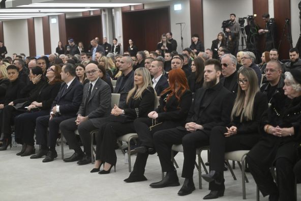Komemoracija se u Sava centru održava od 10 sati, a prva je stigla njegova neutješna obitelj. Supruga Suzana Jovanović je s kćeri Aleksandrom i sinom Danijelom stigla u pratnji najbližih prijatelja, koji se ni tijekom protekle noći nisu odvajali od udovice.