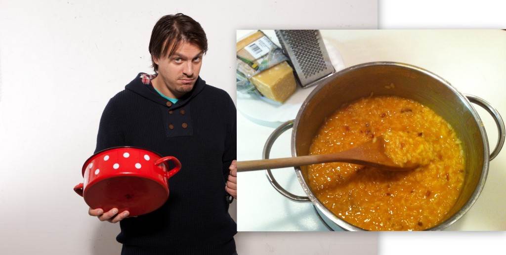 Najgore što se može dogoditi je kad sjedneš ispred monitora, nešto bi pisao, a nemaš temu. Bar ništa konkretno, životno. Počneš razmišljati o svim stvarima koje te inače inspiriraju i stimuliraju i kažeš samome sebi da neke stvari nisu za javnost, i da to rade samo tvoji prijatelji, ti ne, nikada… I tako mi kroz glavu prolaze ideje o novom tekstu, al ništa da preko jagodica završi na monitoru, i opet žbaljim ko kreten, ležim u zgužvanom krevetu s laptopom u krilu i razmišljam… vanjski dug Grčke, operacija vraćanja nevinosti (vrlo popularno... navodno), uklanjanje dlačica iz nosa, antioksidansi, krmeljive oči, skupi laminat, recesija (ova riječ je prestigla onu popularnu 'boli me...' u korištenju zadnjih 5 godina)... niš' od toga nije zanimljivo, sve je dosadno. I skužim da mi sviraju The Black Keys '10 A.M. automatic'. Odlična stvar, blues, high energy, ali novi, dvoje ljudi, kao The White Stripes, ali s manje galame i distorzije. Glava mi se pomiče gore - dolje i u kombinaciji sa zimskim suncem koje mi probija kroz prozore, tvore savršen soundtrack trenutka, pravi pokretač, stimulator o kojem se javno priča. Odmah se sjetim svoje karirane košulje i 'Nevermind' od Nirvane, sjetim se kako su loše izgledali papci s fake Versace košuljama zakopčanim do grla dok su se rasturali na 'No limits' od 2 Unlimited. Sjetim se kad su Lauferi pjevali 'Svijet za nas', prođe mi kroz glavu rasturanje na Sabotage u Palachu, izrežirani porast adrenalina na Rage against the machine u 'Killing in the name' i nezaobilazno dizanje srednjeg prsta u zrak na 'fuck you all…'. Onda se sjetim Britpopa i braće Gallagher i njihove, meni simpatične bahatosti. Blur i 'frizurice' Damona Albarna te humor i socijalni element Pulpa i Jarvisovih pepeljara cvika. Naložio sam se na The Strokes, The Hives, Franz Ferdinand, The Libertines i još gazi-bili-milijun bendova u posljednjih nekoliko godina. Ne mogu se obući ako mi ne svira nešto, ne mogu se voziti ako mi ne sviraju Bright Eyes, a vani lije kiša, a ispred mene 500 km, ne mogu se zabaviti ako ne svira nešto dobro, i stvarno, ali stvarno ne mogu skužiti što to ima u cajkama... al dobro… svakom njegovo veselje… na kraju krajeva, ne bih se sjetio ništa od ovoga napisati da mi nisu svirali Black Keys i '10 A.M. automatic'… i najbolje što se iz ovoga može roditi, da nakon što pročitate, odete i nađete tu stvar na You Tube i uživate skupa sa mnom… Risotto od bundeve.Sastojci: 1 butternut buća 1 mrkva Četvrtina celera 1 poriluk 1 korjen peršina 1 luk Gljive Peršin 400 g piletine 200 g riže 1 dl bijelog vina 50 g maslaca Parmezan 50 g špeka