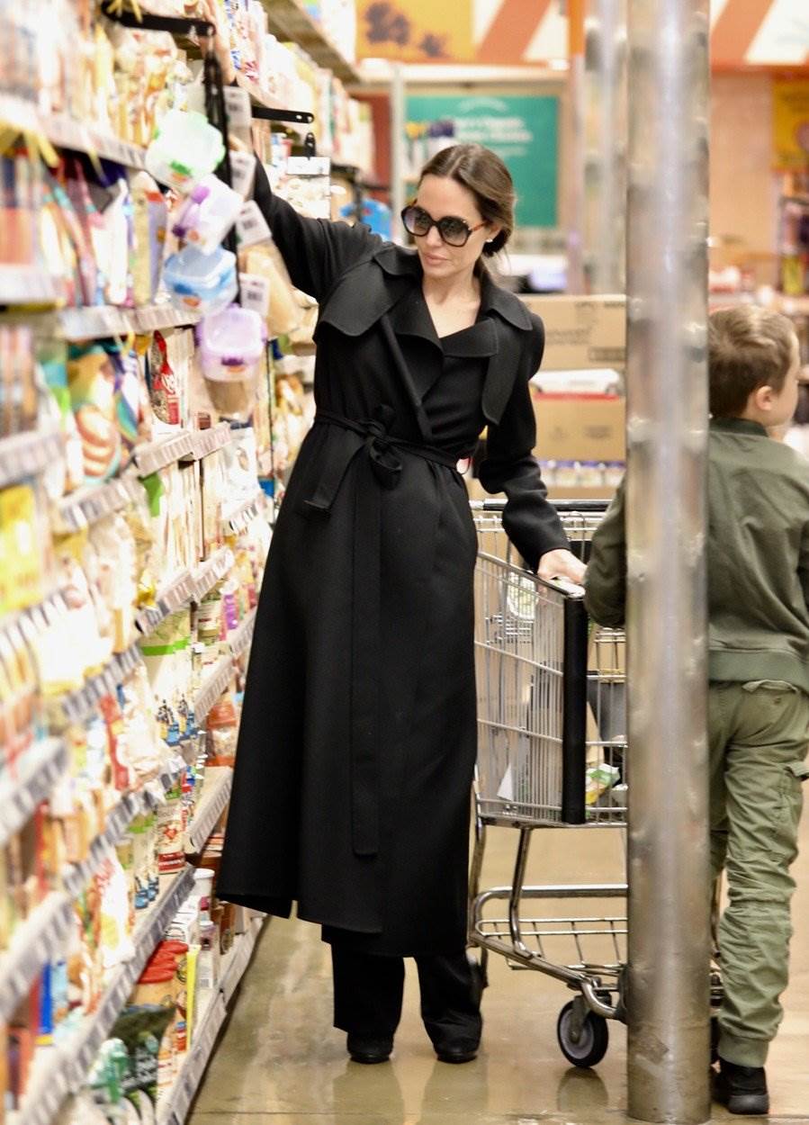 Baš kao i svi obični ljudi, Angelina sama odlazi u trgovinu i sama bira artikle iako se nama ponekad može činiti kako velike zvijezde takvo što nikada ne rade. Bez šminke, kose skupljene u rep, od glave do pete u crnom, Angelina je izgledala vrlo elegantno, a opet s druge strane nije se posebno izdvajala od ljudi koji su u isto vrijeme bili u trgovini. Iako se pokušala sakriti iza velikih tamnih naočala, paparrazi su je lako prepoznali i uhvatili u trenutku dok je birala zobenu kašu, vjerojatno za doručak, dok je ostatak obitelji razgledavao artikle na policama.