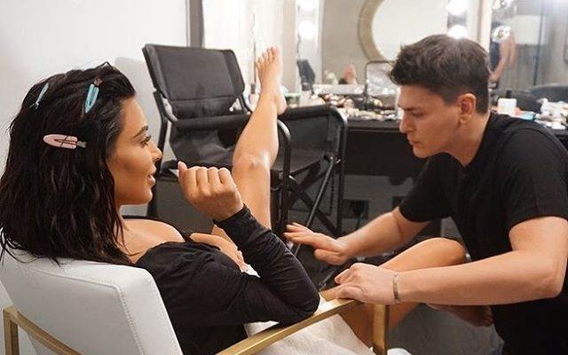 Vizažist i bliski prijatelj Kim Kardashian, Mario Dedivanović, objavio je na svom Instagram profilu fotografiju na kojem pokazuje kako izgledaju neki trenuci uljepšavanja slavne Kim Kardashian. Na jednoj fotografiji Kim sjedi raširenih nogu dok joj on nanosi make-up na bedra, dok na drugoj stoji i izbacila je stražnjicu na kojoj Dedivanović nanosi make-up. Uz fotografije koje je Mario objavio na svom Instagram profilu napisao je da ne uređuje samo lice. Dok je na drugoj fotografiji napisao: 'Što se stvarno događa prije odlaska na crveni tepih'. Mario je tako otkrio što on i slavna starleta rade kada ostanu sami. Ove pomalo bizarne fotografije snimljene su prije dodjele VMA nagrada, a make-up artistu zbog pristupu Kimonoj guzi i intimnim dijelovima zavide mnogi muškarci diljem svijeta. No, ostaje pitanje kako je na objavljene fotografije reagirao Kimin suprug Kanye West.