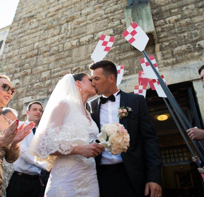 Trofejnom veslaču kum je bio boksački prvak Filip Hrgović, a Antoneli dugogodišnja prijateljica Gea. Veselom i romantičnom vjenčanju prisustvovali su njihovi brojni prijatelji i članovi obitelji, među kojima i Valentinov brat Martin u pratnji supruge Manuele. ''Vaše divne želje učinile su vjenčanje još ljepšim'', brojnim čestitarima na društvenim mrežama zahvalio je mladoženja koji je s bratom prije same svadbe odradio jutarnji trening u čamcu, koji je bio ukrašen vjenčanim buketom.