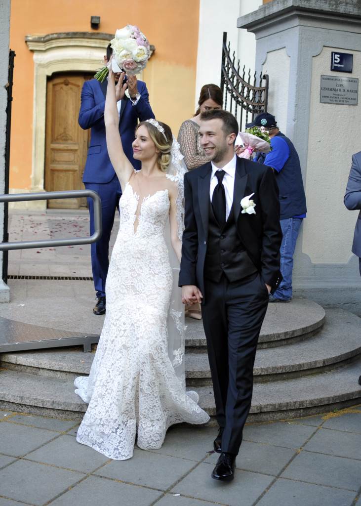Uz stihove pjesme ‘Vilo moja’, 26-godišnji kapetan Dinama, Domagoj Antolić, odjeven u klasično crno odijelo, u prošlu subotu 10. lipnja, u crkvi Uznesenja Djevice Marije u zagrebačkom Stenjevcu pred oltarom je čekao dugogodišnju djevojku, ekonomisticu Mateju Mitrović. I dok, prema statistikama, najbolji vezni igrač Dinama ovoga proljeća i sezone nije skidao osmijeh s lica, mladenku koja je blistala u raskošnoj čipkastoj vjenčanici do oltara je doveo njezin otac. Nakon emotivne ceremonije na kojoj su se mladenci zavjetovali na vječnu ljubav, dočekali su ih gromoglasan pljesak, zapaljene baklje, barjaktari, ali i tamburaši među kojima je bio i bivši nogometaš Ante Ruka-vina, koji je zasvirao gitaru dok su mladenci zaplesali prvi ples. Domagoj je za kuma odabrao najboljeg prijatelja, 28-godišnjeg Mateja Bagarića, bivšeg igrača Dinama, a sadašnjeg igrača albanskog kluba Klubi i Futbollit Laçi s kojim je išao u Dinamovu školu, a istodobno i potpisao prvi ugovor za Dinamo. Dok su mladenci izlazili iz crkve, u obližnjem kafiću odzvanjale su Dinamove pjesme, a među raspjevanim uzvanicima bili su i brojni Antolićevi prijatelji s nogometnog terena poput Marija Šituma, Leonarda Mesarića, Pere Stojanovića, Andreja Kramarića, Domagoja Pavičića i Tomislava Mikulića. Malo tko je u javnosti znao da Domagoj, fini zagrebački dečko, skromno odgojen i uvijek pristojan, ima ozbiljnu djevojku sve dok to nije otkrio u jednom intervjuu prije tri godine. - Moji roditelji već devet godina ljetuju u kamp-kućici u Selcu. Od kraja svibnja do 10. lipnja ili kad uhvatim koji slobodni vikend tijekom godin, i ja odlazim u kamp-kućicu. Naravno, ne sam, nego sa svojom djevojkom s kojom sam u vezi šest godina. Odemo nakon toga i u inozemstvo na nekoliko dana, ove godine bili smo u Barceloni, lani u Budimpešti. Djevojka mi upravo priprema diplomski na ekonomskom fakultetu, smjer financije i računovodstvo. Lijepo nam je u vezi i planiramo se uskoro i vjenčati - rekao je tada Domagoj te istaknuo koliko je vezan za obitelj koja mu je najveća podrška. - Ni mama ni tata nisu mi bili profesionalni sportaši. Djed Luka je žilav, bio je kaskader u filmovima, pojavio se u glasovitom Winnetouu i mislim da sam pokupio njegove gene. Što se tiče savjeta u karijeri, osim, jasno, onih koje mi trener daje, najviše slušam tatine. Tata je i moj najveći kritičar. Koliko sam vezan uz obitelj, govori i činjenica da sam stan kupio u Gajnicama na tri minute od njihova - rekao je Domagoj, koji se Matei na vjernost zakleo nakon više od osam godina veze, a među prvima su im čestitali i sreću u bračnom životu poželjeli i glumac Matko Knešaurek i njegova supruga Anica. I dok je crkvena ceremonija bila rezervirana za obitelj i najbliže prijatelje, velika svadbena zabava održana je u luksuznom Golf & Country Clubu gdje su se uzvanici, kojima se pridružio i Zoran Mamić, zabavljali do ranih jutarnjih sati. Za Domagoja kao i ostale igrače Dinama trenutačno traje ljetna stanka, a na odmoru će dinamovci biti do 21. lipnja, kada je na rasporedu okupljanje i prvi trening uoči početka nove sezone. Mladenci će do tada zasigurno iskoristiti vrijeme za sebe i bračno putovanje.