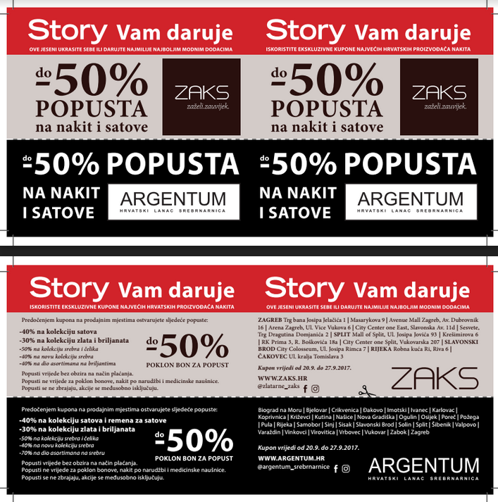 SAMO U STORYJU Kuponi za velike popuste u Zaksu i Argentumu