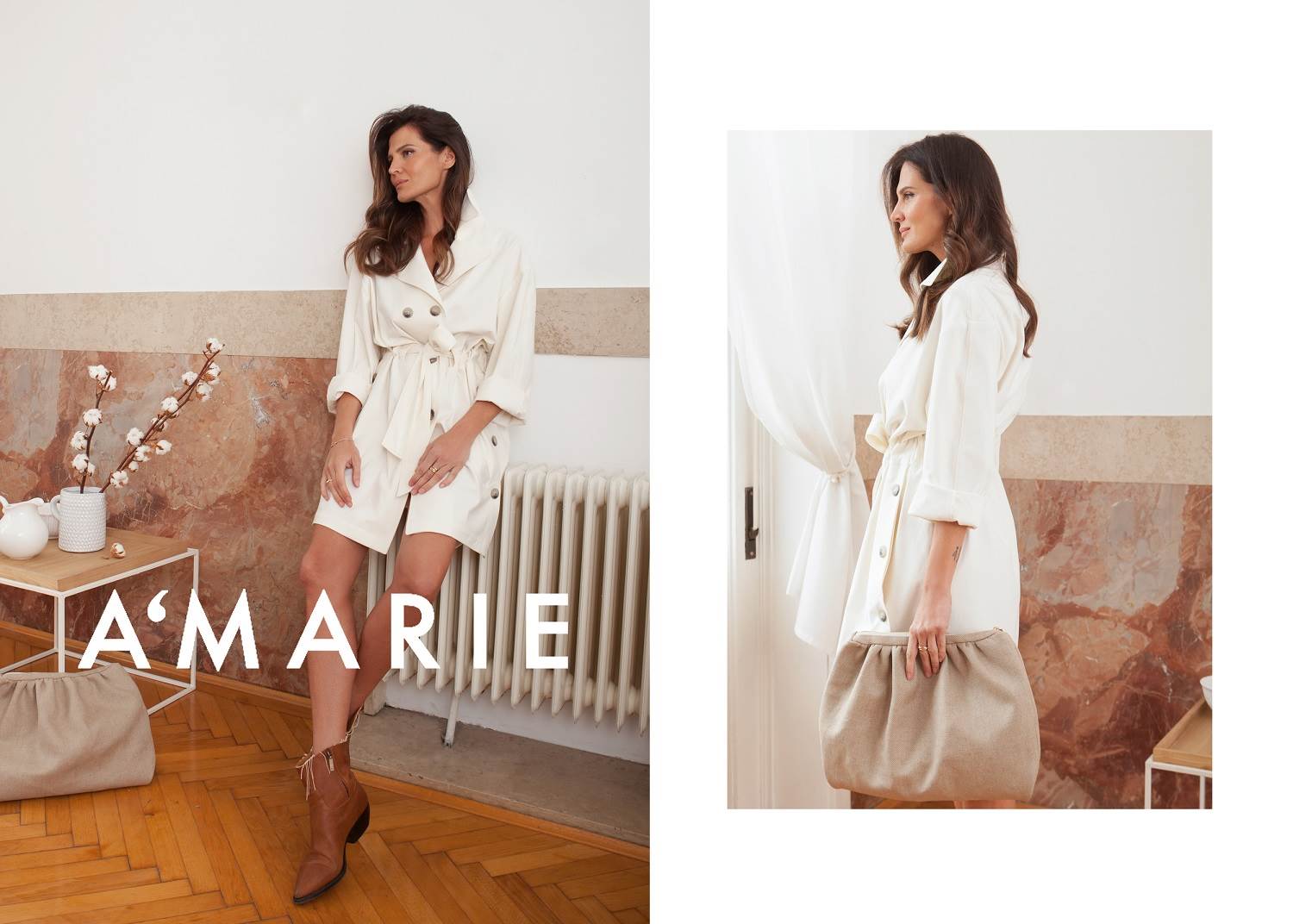Fluidnost krojeva prati profinjena paleta boja koja se proteže od klasične bijele, boje pijeska, svijetlo sive do zemljanih tonova koji su izuzetno podatni za kombiniranje. Izbjegavanjem klasičnih šarenih proljetnih uzoraka dizajnerica kreira minimalističku podlogu za svaku ženu koja će pojedinom komadu iz kolekcije dati svoj pečat: „Moje klijentice su najbolje promotorice A’Marie brenda. Na njima uvijek vidim kako nešto što sam dizajnirala dobiva sasvim novi život i osobnost, što je primamljiva polazišna točka za mene kao dizajnera. U novoj kolekciji tako imamo niz komada koji se mogu kombinirati zajedno za “total look”, ali savršeno funkcioniraju kao zasebni odjevni predmeti s kojima će svaka žena ispričati njoj svojstvenu modnu priču”. – kazala je Anamarija Brkić.