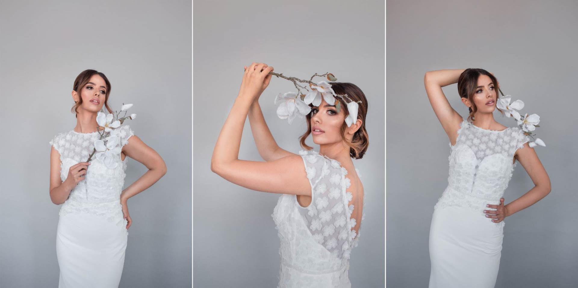 Materijali koje dizajnerica Marina koristi su oni već tradicionalno rezervirani za vjenčanice - svila, saten, til i čipka, a dvije haljine iz lookbooka posebno se ističu 3D cvjetnim aplikacijama.