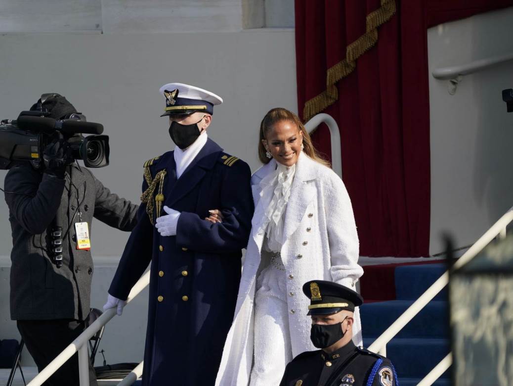 Pjesmu This land is your land izvela je Jennifer Lopez. 'Čast mi je bila provesti nekoliko trenutaka s ovim hrabrim muškarcima i ženama. Hvala vam na vašoj žrtvi, odajem vam počast danas i svakoga dana. Sutra ću pjevati za vas i za sve Amerikance', napisala je J. Lo na svom Instagramu nakon generalne probe. Iako je i tada zablistala u Chanel kombinaciji koju je obilježio crno-bijeli kaput, snažan makeup i glamurozna frizura, blistala je i tijekom izvedbe. Za nastup je odabrala u bijelu kombinaciju - svjetlucave hlače, bijelu košulju i dugi kaput koji je ukrao show. Frizura i šminka su bile besprijekorne, a koliko je sretna jer je dio ovog povijesnog dana govorio je njezin veliki osmijeh.