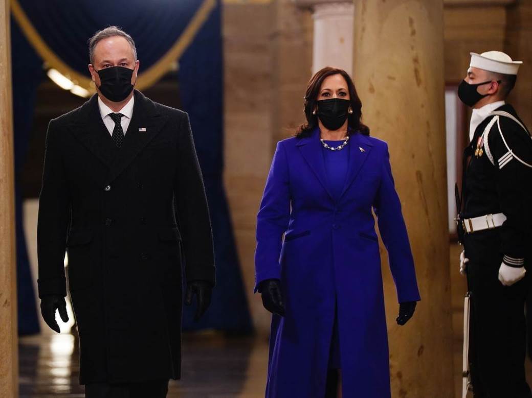 Suprug potpredsjednice, Doug Emhoff, bio je gospodin u odijelu Ralpha Laurena, također američkog dizajnera koji je tijekom ceremonije inauguracije odjenuo većinu svečanih uzvanika čime je politička scena poručila “American first”.