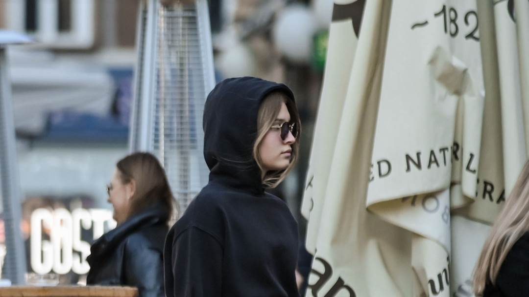 Za šetnju Cvjetnim trgom odjenula je običnu kratku, crnu majicu s kapuljačom i crne kožne tajice. Najveću pažnju privukle su popularne tenisice poznatog brenda Off-White s detaljima u jarkoj narančastoj boji.