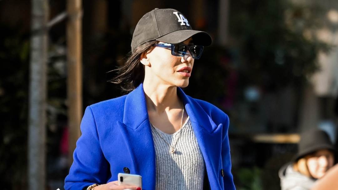 Zasjala je u kaputu jarko plave boje i visokim čizmama sa zmijskim uzorkom, a od zubatog sunca se zaštitila sportskom šiltericom i sunčanim naočalama.