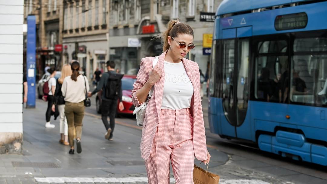 Odjenula je idealne komade za prijelazno razdoblje - karirani sako i hlače u crveno-bijelom tonu te bijelu majicu. Cijelu kombinaciju 45-godišnjakinja je podignula šik sunčanim naočalama i torbicom. Sve to i ovog puta je zaokružila bijelim tenisicama.