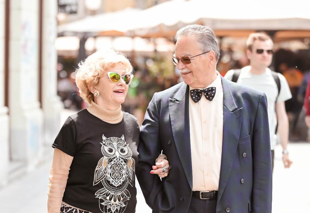 Gospođa s besprijekornom frizurom i pomno odabranim nakitom te trendi sunčanim naočalama mačkastog oblika prošetala je ruku pod ruku sa gospodinom u tamnoplavom odijelu, košulji i leptir mašni.