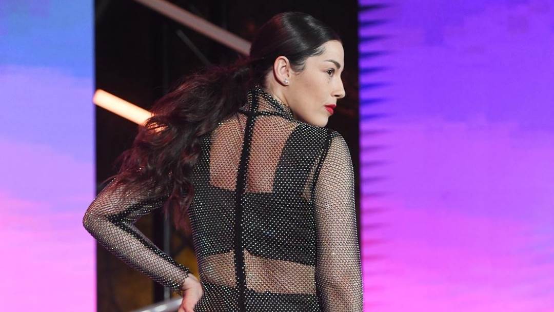 Mlada glazbenica je izvela svoj hit 'Tranquila', a ispod svjetlucavog, prozirnog kombinezona nalazio se crni, dvodijelni komplet.