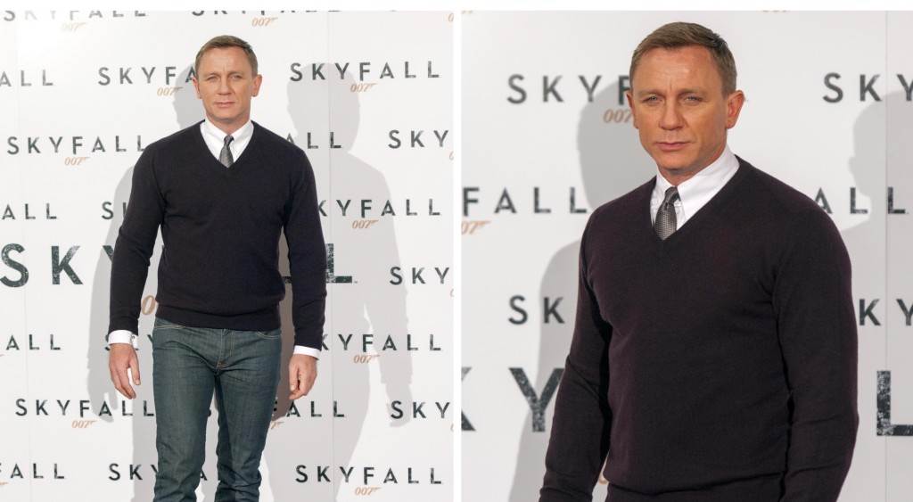 Kako bi što bolje prezentirao film o James Bondu "Skyfall" diljem svijeta, Daniel Craig putuje po Europi i pojavljuje se na crvenim tepisima. Dok je u Londonu glumac bio bolestan, na rimskoj je premijeri zabljesnuo u pripijenim trapericama, klasičnim muškim cipelama i jednostavnoj vesti ispod koje je virila pomno odabrana kravata.