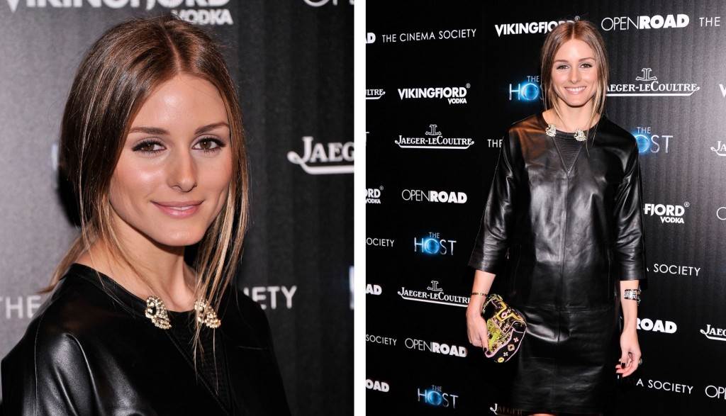 Dok je njen styling bio prvenstveno određen pristupačnom kožnom haljinom high street brenda Whistles, Olivia se odlučila za nešto elaboriranije modne dodatke i cipele kojima je podigla ukupan dojam, kao prava majstorica aksesoara.