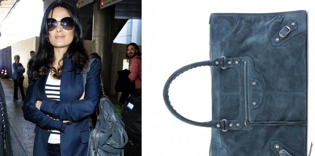 Balenciaga torbica boje petroleja jedan je od najdražih modnih dodataka slavne glumice Salme Hayek koja se, kako ne bi ljutila supruga, odlučila prepustiti svijetu šarene mode iz portfelja Gucci Grupe.