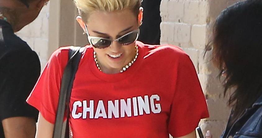 U crvenoj majici rezanoj ispod dekoltea, Miley je ponosno pokazala isklesan trbuh, ali i natpis '