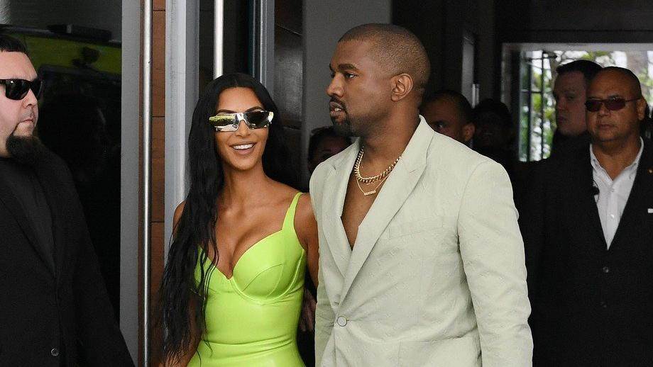 Kim je na sebe nabacila kožnu, flourescentnu usku haljinu do gležna na tanke naramenice upotpunjenu rezom koji seže do iznad koljena. Oči je prikrila tamnim i glomaznim naočala, a kosu ležerno raspustila. Malo tko je dugo mogao gledati u nju jer je njezina haljina 'zasljepljivala' uzvanike. Pored nje je šetao Kanye odijeven u bež odijelo, a na nogama je imao debele čarape i natikače. Riječ je o natikačama i čarapama s njegovim vlastitim potpisom, a pripadaju novoj kolekciji njegovog brenda Yeezy kojem obično Kim služi kao svakodnevni reklamni model.