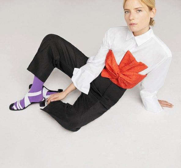 Mrštite se i na samu pomisao sparivanja čarapa na sandale? Upravo je to trend koji ove sezone njeguju u modnoj kući Mango. Riječ je zapravo o gustim čarapama/najlonkama u boji. One ljubičaste iskombinirali su s crnim sandalama s remenčićima , ali i onim s malom crnom block potpeticom i bijelim trakicama. Sandale preporučaju čak i u varijanti sandala japanki.