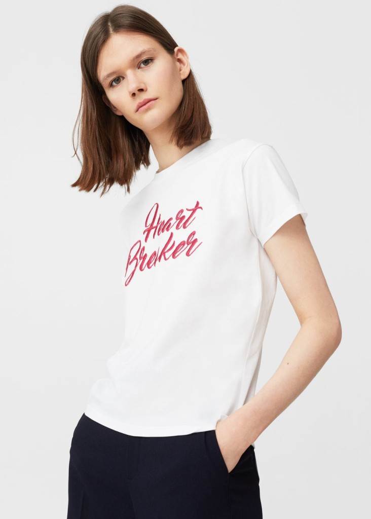 Da i običan t-shirt može osvojiti trendseterice jednakom brzinom kao i par dizajnerskih natikači dokazuje ova majica iz Mangove proljetne kolekcije. Logomanija već neko vrijeme vlada svijetom mode, što su dokazale i velike modne kuće (ali i poznate osobe poput Victorije Beckham koja je osvojila simpatije natpisom na majici iz svoje kolekcije), a trendu se i uspješno pridružio i španjolski brend. Naime, svjetski poznate blogerice rado su dijelile fotografije s običnim bijelim t-shirtom kojeg krasi ružičasti natpis 'Heart Breaker'. Taj 20-ak eura vrijedan komad iznimno je lako kombinirati, a duhovita poruka upečtaljiv je detalj na svakom looku. Koje smo odabrali, pogledajte u nastavku.
