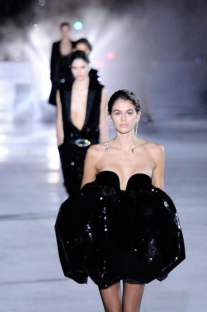 U Parizu traje tjedan mode, a jučer je dan obilježila revija Anthonyja Vaccarella za Saint Laurent. Revija je bila smještena podno Eiffelovog tornja, uz fontane Trocadero, a dizajner Vaccarello je predstavljenom kolekcijom odao počast nedavno preminulom Pierreu Bergeu, ključnom čovjeku kuće koji je zajedno sa svojim životnim partnerom Yves Saint Laurentom 1961. osnovao renomiranu dizajnersku kuću. Među ostalim manekenkama koje su prošetale pistom, posebno se isticala jedna. Mlada nasljednica slavne mame Cindy Crawford, Kaia Gerber koja je tek nedavno imala svoj debi kao manekenka, taj je posao odradila kao da ga radi godinama, poput prave femme fatale. Njezino prvo pojavljivanje na pisti pariškog tjedna mode ostat će upamćeno po maloj svjetlucavoj crnoj haljini u izvedbi Vaccarella, kojom je naglašem njezin seksepil i 'beskrajno' dugačke tanke noge koje je naslijedila od svoje mame supermodela.
