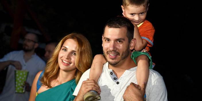 Doris Pinčić Rogoznicu ne izlazi često s obitelji na društvena događanja, no ljetno kino u hladu šumovitog Tuškanca bio je dovoljan motiv da svi zajedno provedu ugodnu večer uz dobar domaći film. Lijepa glumica i voditeljica blistala je u zelenoj haljini na jedno rame uz svog naočitog supruga Borisa i preslatkog sinčića Donata. Preplanula obitelj nedavno se vratila iz rodnog Zadra gdje su napunili baterije za još poneki radni dan do novog odmora