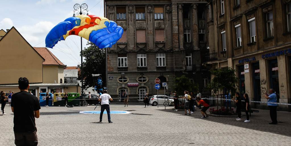 Spektakularnim doskokom padobranca otvorena nova poslovnica Polleo Sporta!