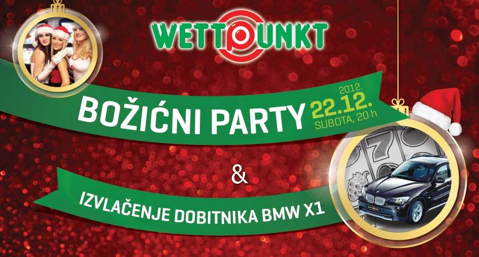 Automat klub Wettpunkt u Branimir centru, poznat po feštama u Zagrebu, 22. prosinca s početkom u 20 h priređuje svojim gostima Božićni party u sklopu kojeg de se održati velika završnica nagradne igre "Wettpunkt poklanja auto snova BMW X1".
