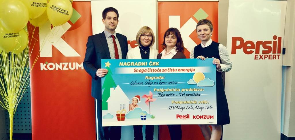 Ocjenjivački odbor sastavljen od predstavnika tvrtki Henkel i branda Persil u sklopu poslovne jedinice deterdženata i sredstava za čišćenje u domaćinstvu, Konzuma te predstavnika Ministarstva znanosti, obrazovanja i športa, proglasio je najboljim prijedlog predstave 'Eko priča – Tri praščića', Dječjeg vrtića Dugo Selo. Pobjednički vrtić bit će nagrađen instalacijom solarnih ćelija koje će postaviti tvrtka Solvis. Instaliranje fotonaponskih sustava na krov vrtića omogućit će vrtiću značajne uštede energije i zaštitu okoliša kroz korištenje sunčeve energije.