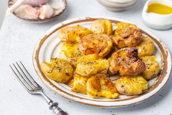 Zgnječeni mladi krumpir jedan je od naših favorita! Krumpir najprije trebate skuhati u slanoj vodi, dobro ga začiniti i zgnječiti vilicom. Iznutra će ostati mekan, poput pirea, a izvana će biti savršeno hrskav.