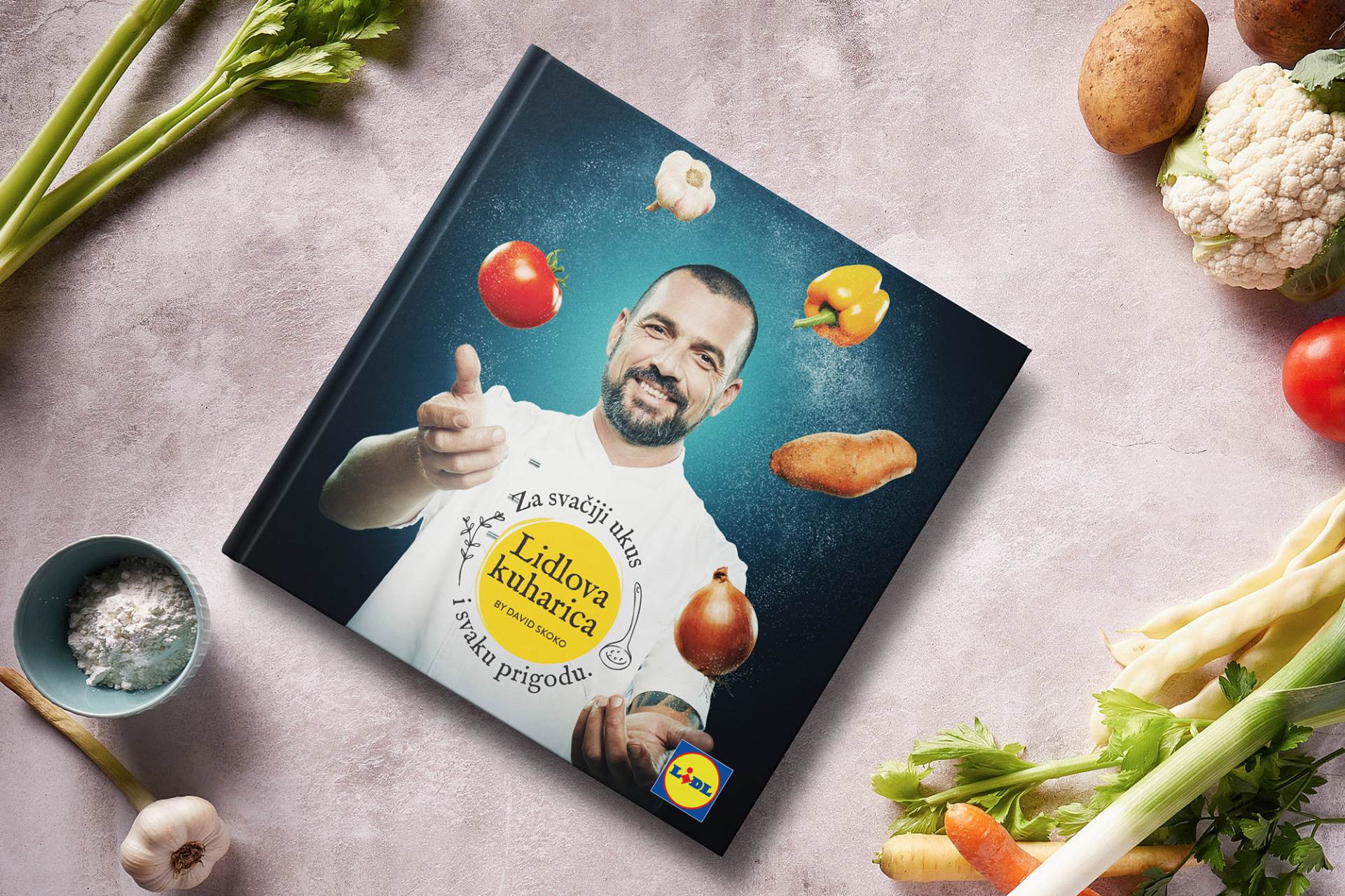 Od ponedjeljka, 16. studenoga, u svim Lidlovim trgovinama na dar možete dobiti atraktivnu Lidlovu kuharicu by David Skoko. Riječ je o zajedničkom projektu poznatog chefa i Lidlovog zaštitnog lica Davida Skoke i Lidla Hrvatska, koji je na jednom mjestu okupio čak 52 recepta za pripremu jela za svačiji ukus i za svaku prigodu.