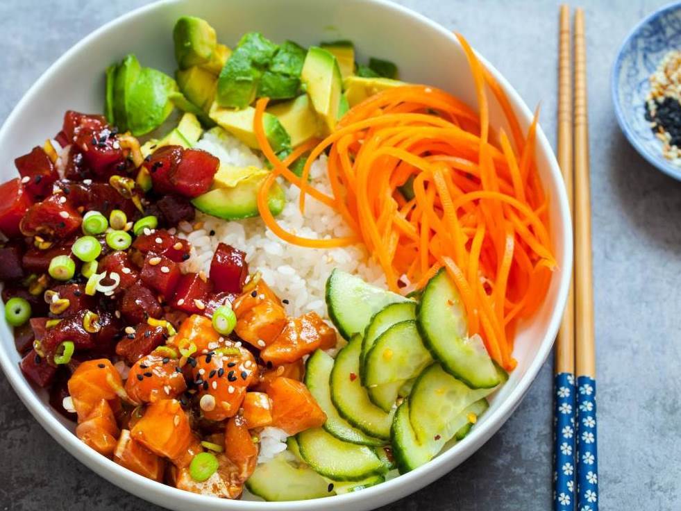 Poke bowl je pojam za izvorno havajsko jelo koje se priprema u posudicama i koje posebnim čine svježe sezonske namirnice te stil slaganja.Sam naziv dolazi od havajskog pojma koji znači narezati na komadiće i u tradicionalnoj havajskoj kuhinji poslužuje se kao predjelo. Jelo je kombinacija utjecaja japanske i azijske kuhinje pa se uz obavezni soja umak namirnice pripremaju uz dodatak ulja od sezama, rižina octa, furikake (mješavina sušene ribe, sjemenki sezama i algi), krupne morske soli, papričica, wasabi umaka, mladog luka, ukiseljenog đumbira, riže, ananasa, svježih krastavaca, crvenog kupusa, avokada... Mogućnosti kombiniranja zaista su brojne te, uz sve tradicionalne preporuke, oduševljava i mogućnost kreiranja ovog ukusnog i iznimno zdravog obroka. Pa tako uz klasične zdrave namirnice - rižu, kvinoju, leću te svježe i ukiseljeno povrće, ovo jelo privlači i svježom, sirovom ribom. A odličan je odabir marinirano meso tune u ukusnom soja umaku posebice za sve one koji vole morske okuse. Birajte zdrave, organske namirnice i okuse koje volite, koristite začine, reckajte, slažite i poslužujte u atraktivnim zdjelicama jer svi ti elementi pridonose uživanju u poke bowlu.
