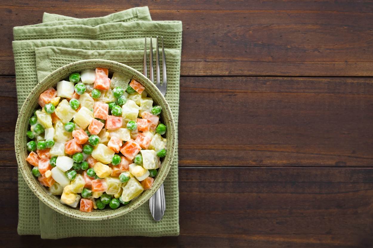 Francuska salata i pečeni odojak nekako idu ruku pod ruku s dočekom Nove godine. Ova salata koja, ruku na srce, nema baš neke veze s Francuskom, nezaobilazni je prilog koji se generacijama servira na Silvestrovo a i koji ima razne varijante. Nama najpoznatija verzija sadrži krastavce, mrkvu, grašak, majonezu, krumpir i jabuke a takva se nalazi i u “Dalmatinskoj kuhinji” Dike Marjanović-Radice. No, o tome nešto kasnije.