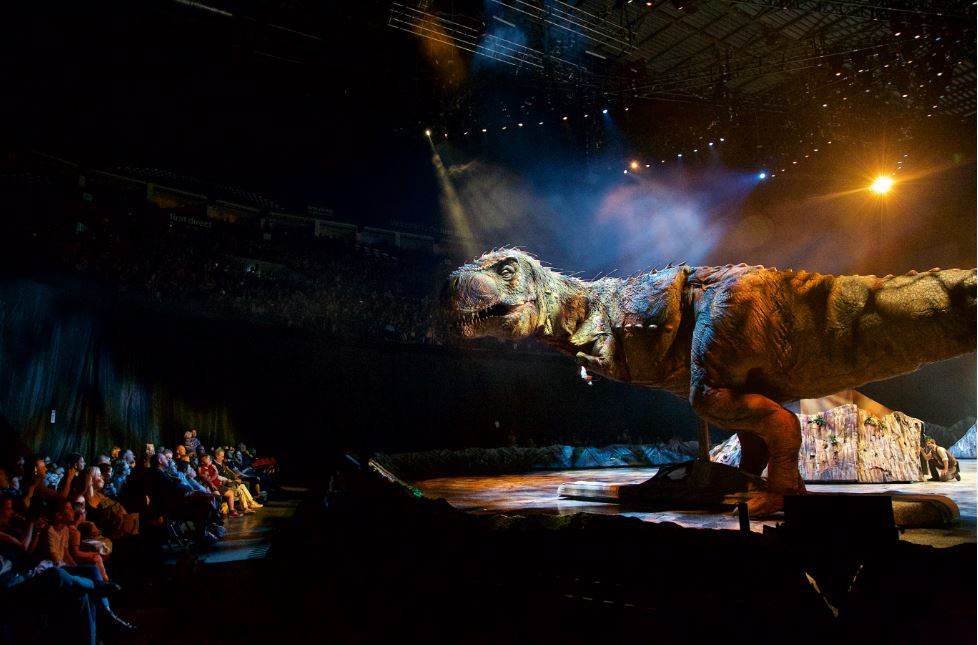 U Areni će biti predstavljeno ukupno 9 vrsta dinosaura. Predstava uključuje Tyrannosaurusa Rexa, najvećeg grabežljivca među dinosaurima, kao i Plateosaura te Liliensternusa iz razdoblja trijasa, Stegosaura i Allosaurusa iz jure, Torosaurusa i Utahraptora iz impresivnog razdoblja krede. Najveći među njima je Brahiosaur, od nosa do repa 11 metara visok i 17 metara dugačak. Izgradnja takve produkcije trajala je godinu dana i zahtijevala tim od 50-ak ljudi, uključujući inženjere, tekstilne tehničare, proizvođače kože, umjetnike, slikare, te stručnjake animatronike.