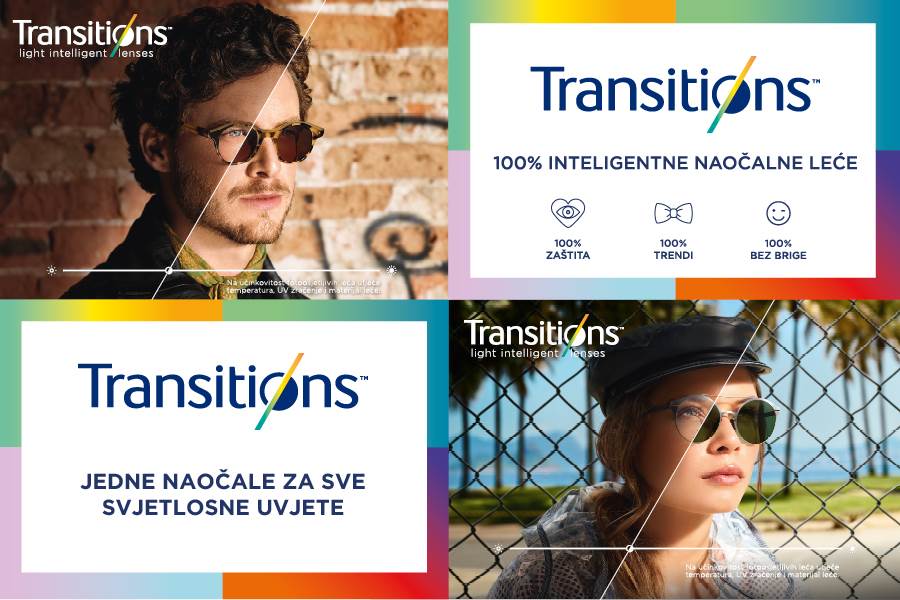 Osim što su rezultat 25 godina postojanja, istraživanja i razvoja, Transitions inteligentne naočalne leće prve su i tehnološki najsuvremenije fotoosjetljive leće na svijetu. Pružaju nosiocu savršen pogled bez obzira na vremenske uvjete. Uvijek prilagode točnu količinu svjetla koju propuštaju do oka čineći vašu svakodnevicu jednostavnijom, a život elegantnijim. One su udobne, pouzdane i pružaju kvalitetnu zaštitu.